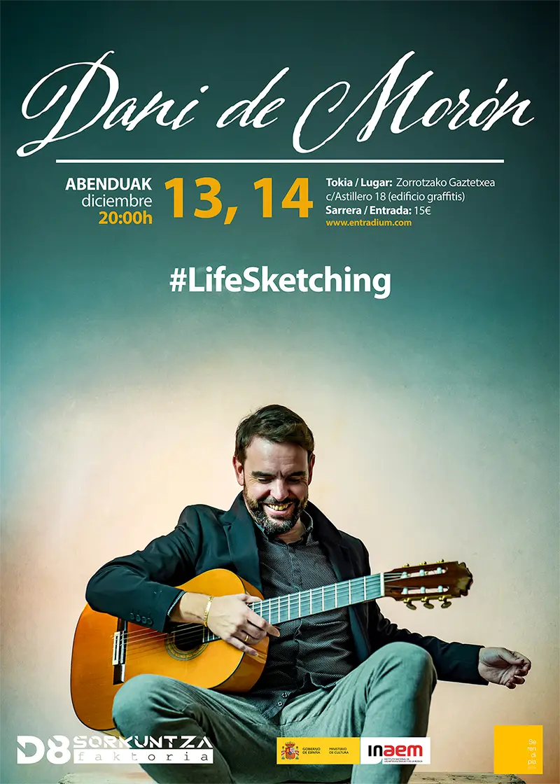 En sus próximas actuaciones en D8 Sorkuntza Faktoria, Dani de Morón interpretara el proyecto #LifeSketching, una obra en la que, junto a la percusión, captura la esencia de la vida urbana con una composición libre que explora nuevos ritmos y armonías. Con esta creación, Dani trasciende las estructuras flamencas tradicionales, creando una experiencia inmersiva que refleja el pulso y la profundidad de la metrópolis moderna.