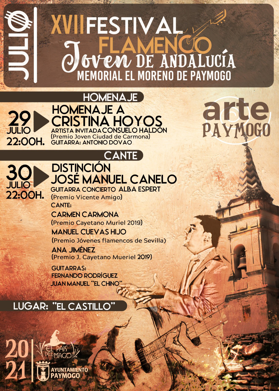 Festival Flamenco Joven de Andalucía – Paymogo (Huelva) 29 y 30 de julio 2021 – «El Castillo» – Paymogo (Huelva) Festival Flamenco de Paymogo – Huelva Descubre más desde Revista DeFlamenco.com Suscríbete y recibe las últimas entradas en tu correo electrónico. Escribe tu correo electrónico… Suscribirse + Añadir Google Calendar Exportación + iCal / Outlook Etiquetas: Cristina Hoyos Fecha 29 - 30 Jul 2021 Finalizdo! Hora 08:00 Etiquetas Conciertos de Flamenco Zonas Huelva Compartir este evento Recomendamos Mié - Vie, 17 - 19 Dic 2025 El Choro y Paula Rodríguez “In situ” – Flamenco Real Vie, 26 Dic 2025 “FOSFORITO EN EL RECUERDO” Bernardo Miranda (cante) y Luis Medina (guitarra) Lun, 29 Dic 2025 Leonor Leal “¡Ahora bailo yo!” – Materiales para una charla bailada Mar, 30 Dic 2025 “Escuela Bolera y Guitarra Española” – Ateneo de Madrid Sáb, 03 Ene 2026 “El Cante por Derecho (II)” – Ezequiel Benítez y Paco León – Ateneo de Madrid ¡No hay eventos!