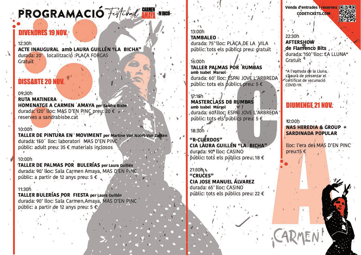 Se presentan tres días de espectáculos de flamenco, con artistas confirmados como Cia. José Manuel Álvarez, que actuará con su gran obra «Cruces«, representada por primera vez en la provincia de Girona, o la bailaora de flamenco Laura Guillén, conocida como «La Bicha», de entre otros, así como talleres y actividades para todas las edades.