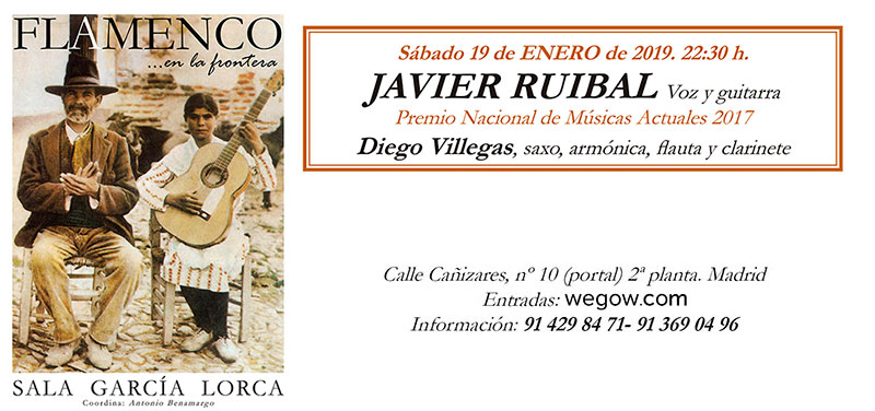Javier Ruibal – Flamenco en la Frontera 2020 Compositor, guitarrista y cantante. Puerto Santa María (Cádiz) Diego Villegas – saxo, armónica, flauta y clarinete.