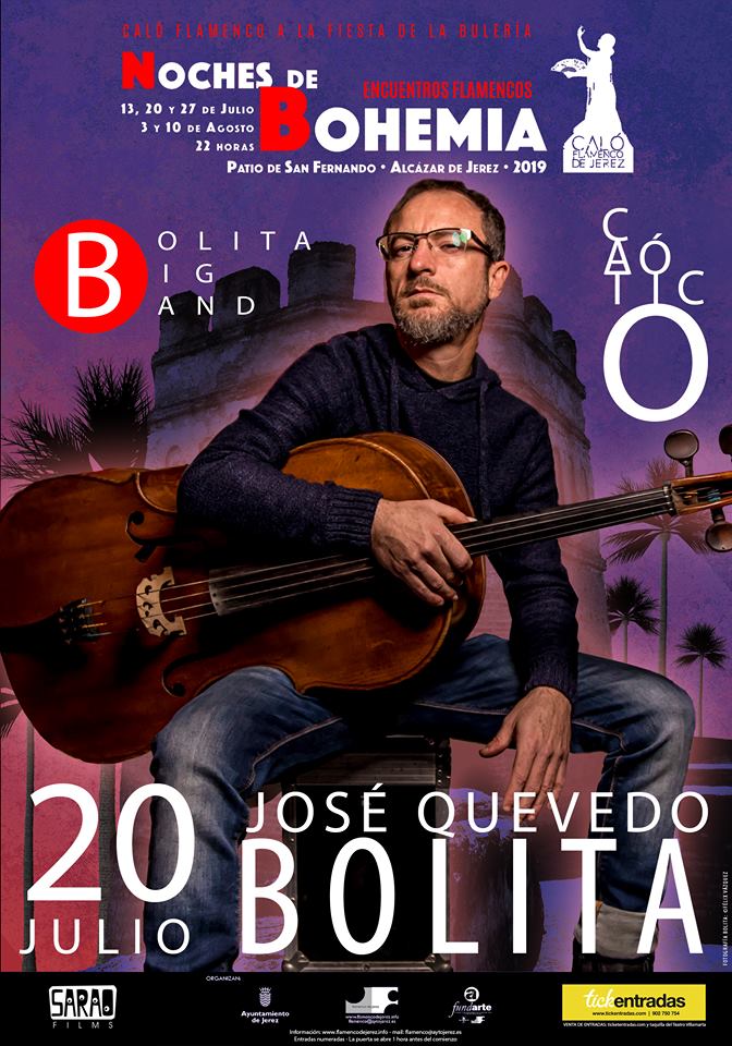 José Quevedo Bolita estará el sábado 20 de Julio en el Patio de San Fernando en el Alcázar de Jerez con su concierto «Caótico. Bolita Big band» en el ciclo #NochesdeBohemia de Ayuntamiento de Jerez de la Frontera.