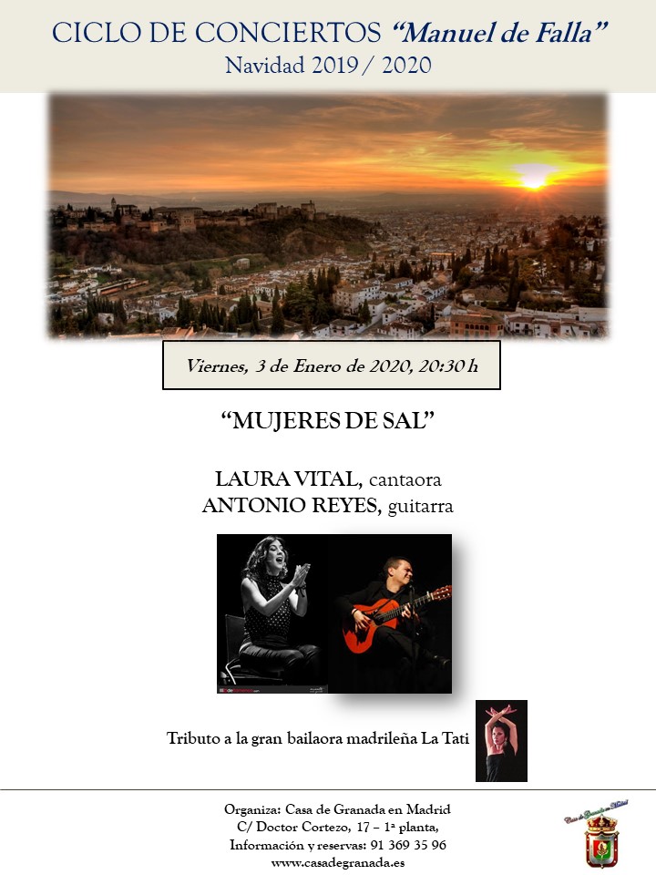 El acto será el 3 de Enero 2020. A las 20.30h. En la Casa de Granada en Madrid. C/. Dr. Cortezo, 17. 28.012 .