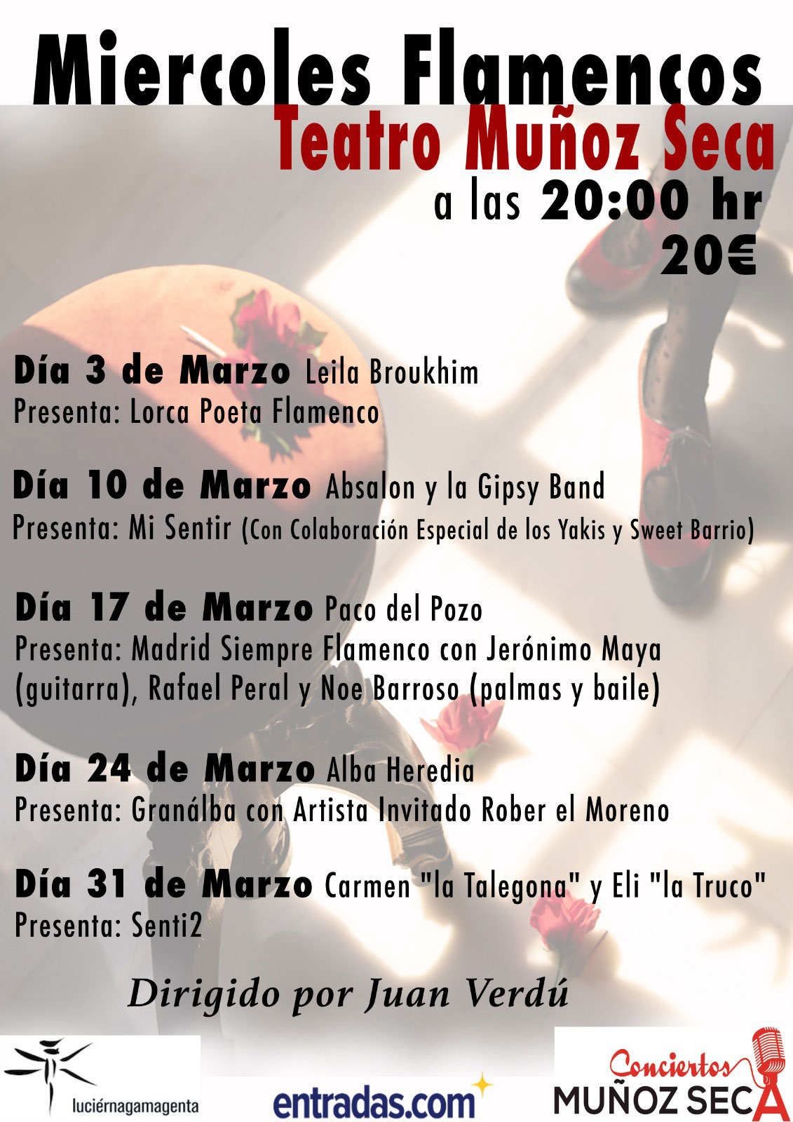 Nuevo ciclo de flamenco en Madrid, los miércoles flamencos en el Teatro Muñoz Seca de Madrid. A las 20.00h