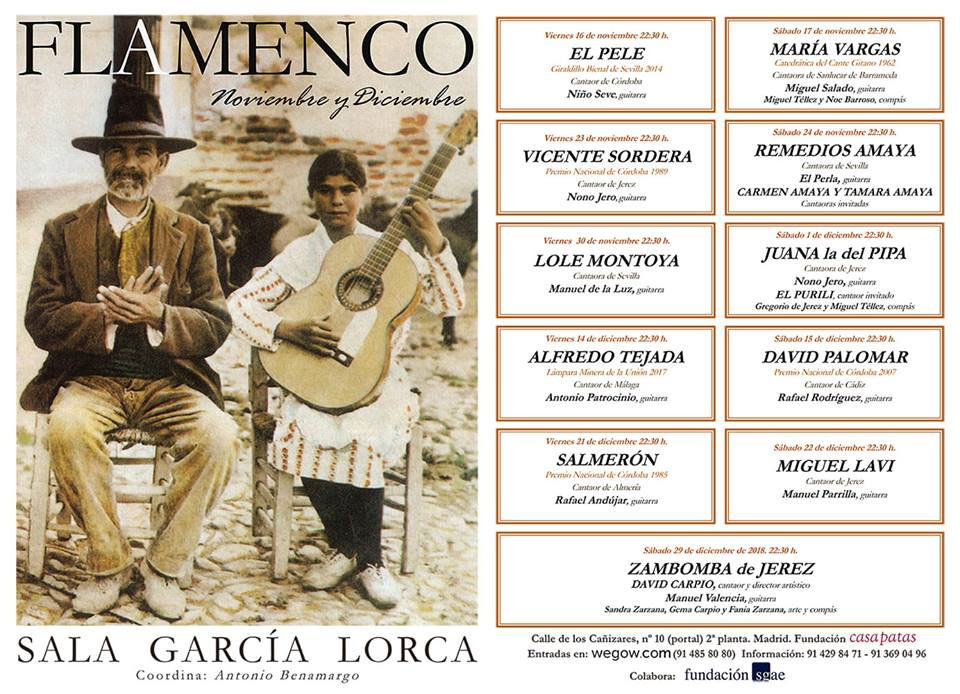 Ciclo Noviembre/Diciembre – Sala García Lorca Fundación Conservatorio Casa Patas c/ Cañizares 10 – 2ª planta