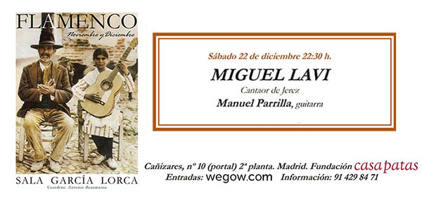 Miguel Lavi, cantaor nacido en La Plazuela de Jerez, cuna de grandes artistas flamencos como La Paquera, Los Agujetas y Los Moneo, entre otros.. Empezó a cantar desde muy niño, de hecho a las doce años se subió por primera vez a un escenario en la Peña Agujetas el Viejo en Rota y profesionalmente debutó en 1998 acompañando a los bailaores Andrés Peña y Mercedes Ruiz en una estancia de seis meses en Japón, país del que vino asombrado por su gran educación y su inmensa afición al Flamenco y al que ha vuelto en varias ocasiones para colaborar con el maestro Koyima en varios espectáculos. En 1999 viaja a Barcelona y figura en el elenco artístico del Tablao El Cordobés, durante cinco años, alternando con artistas de la talla de Antonio Canales, Duquende, Belén Maya, La Tolea y participando en las obras “Somorrostro” y “Los Tarantos” con la dirección del maestro Javier Latorre. En 2004 vuelve a su tierra Jerez de la Frontera y canta pa bailar al maestro Antonio Canales en gira por Méjico y con La Moneta, Pepe Torres y Mercedes Ruiz. En 2008 es programado en el Festival de Jerez y da un recital en solitario con la guitarra de Diego del Morao en el Palacio de Villavicencio, con gran éxito de crítica y público. A partir de 2010 inicia un sinfín de actuaciones entre las que destacamos La Peña el Taranto de Almería y la Peña La Platería de Granada junto al guitarrista Miguel Iglesias y el Corral del Carbón de Granada y la Peña de Tres Cantos en Madrid con el guitarrista Manuel Parrilla. Confiesa su admiración por Manuel Torre, Manolo Caracol, Tomás Pavón, Chocolate, Fernando Terremoto, Agujetas y Camarón de la Isla. Estamos ante un cantaor con una clara proyección de cara a los próximos años, con las mejores características de la denominación de origen “La Plazuela de Jerez”. El compás, el quejío y el pellizco son atributos que adornan el cante de Miguel Lavi. En 2018 publica su disco Viejos Retales producido por Manuel Parrilla y editado por el sello UNIVERSAL.