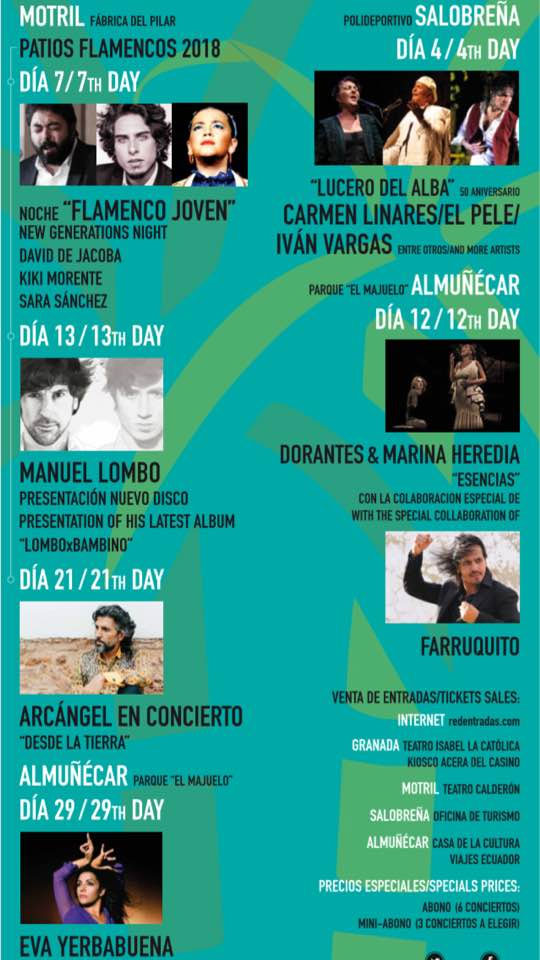 La Fábrica del Pilar de Motril acogerá este año la edición de los Patios Flamencos. En esta ocasión, jóvenes flamencos de calidad ya contrastada como David de Jacoba, Kiki Morente y la bailaora Sara Sánchez, prometen convertir la noche en inolvidable.