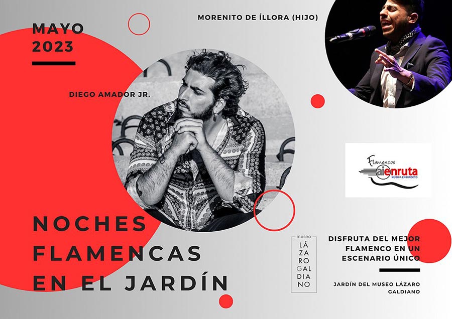 Vuelven las Noches flamencas al jardín del Museo gracias a los conciertos flamencos de AIEnRUTa y el mejor flamenco joven. En esta edición, los espectadores podrán disfrutar del arte del flamenco puro de Diego Amador Jr. Rodeado de una familia gitana con una gran influencia flamenca, debutó como percusionista pero con el tiempo se convirtió también en cantaor. La combinación de ser un gran compositor, músico y artista en general, le ha servido para poder acompañar a muchos de los más destacados, como «Tomatito», Joaquín Cortés y «La Susi» entre otros o del Jazz, con Path Metheny, Birelli Lagrene y Charlie Haden.