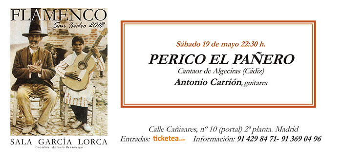 PERICO EL “PAÑERO” es un cantaor gitano nacido en Algeciras en el seno de una familia ligada al cante. Con estos antecedentes familiares, y con la influencia de aquellos gitanos viejos del Campo de Gibraltar, es normal que su cante fluya por los cauces que emanan de los manantiales más puros.