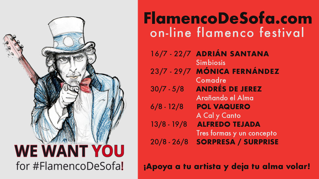 El espectáculo «A cal y canto» de Pol Vaquero estará disponible en la web https://flamencodesofa.com desde del 6 al 12 de agosto 2020.