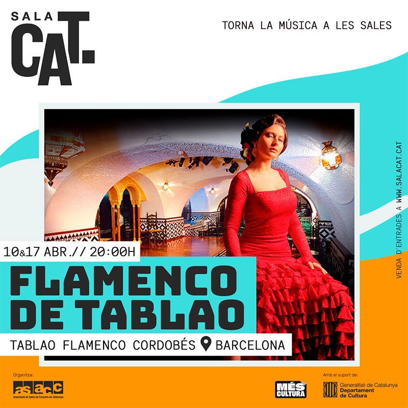 Tras meses de cierre a consecuencia de la Pandemia, Tablao Flamenco Cordobes, que en 2020 ha celebrado su 50 Aniversario, ofrece un ciclo de dos conciertos en el mes de Abril, dentro de la campaña SALA CAT, promovida por la Asociación de Salas de Concierto de Catalunya con el soporte del Departament de Cultura de la Generalitat de Catalunya (ICEC).