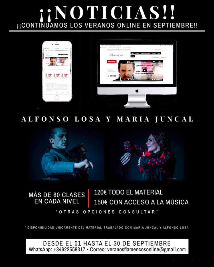 Atención! – Continuamos en SEPTIEMBRE – Ustedes lo pidieron y nosotros lo cumplimos ¡CONTINUAMOS VERANOS FLAMENCOS ONLINE EN SEPTIEMBRE! Sabemos que es mucho el contenido por trabajar, así que esta vez tendrán TODO el material disponible desde el día 1 hasta el 30 de Septiembre. Mantendremos nuestras clases en streaming cada miércoles para aclarar dudas y además damos la opción de tener acceso a la música con la que trabajamos en clases ?. Si eliges esta propuesta el curso queda en tan sólo 150€ con más de 60 clases para trabajar y la música a tú disposición. Si ya terminaste de leer esto, corre a escribirnos para enviarte toda la info detallada???. WhatsApp: +34622558317 • Correo: veranosflamencosonline@gmail.com Fotos cartel: Beatrix Molnar [ATTENTION] You requested it and we fulfilled it. WE WILL CONTINUE OUR VERANOS FLAMENCOS ONLINE IN SEPTEMBER! We know that there is a lot of content to work on, so this time you will have ALL the material available from the 1st to the 30th of September. We will keep our classes in streaming every Wednesday to clarify doubts and we also give the option of having access to the music with which we work in classes ?. If you choose this proposal, the course is only €150 with more than 60 classes to work on and the music at your disposal. If you have finished reading this, write to us to send you all the detailed information???. WhatsApp: +34622558317 • Email: veranosflamencosonline@gmail.com