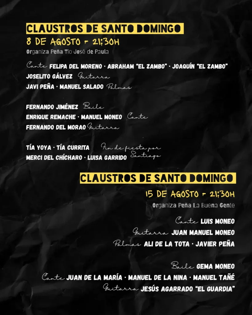 La edición de 2025 del ciclo se desarrollará entre el 25 de julio y el 15 de agosto, con conciertos cada viernes desde el 25 de julio hasta el 15 de agosto inclusive, preámbulo de la Fiesta de la Bulería