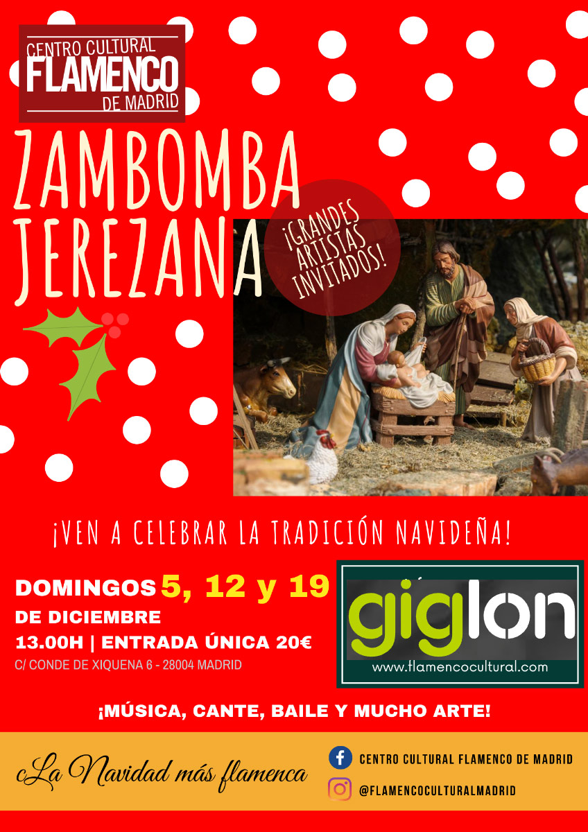 Ya llega la Navidad y con ella la alegría de su música y sus villancicos. En el Centro Cultural Flamenco de Madrid queremos que tú y tu familia vengáis a celebrar esta maravillosa época rodeados del mejor ambiente flamenco: los domingos 5, 12 y 19 de diciembre a la 13h tendrán lugar nuestras ZAMBOBAS JEREZANAS, donde el cante, el baile y la cultura se unirán para festejar la alegría y el arte característicos de estas fiestas tan tradicionales.