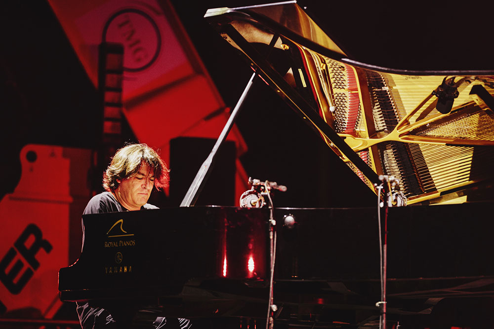 The evening began like a wedding. A shuttle-bus at the entrance to the metro stop Blas Infante would take spectators and press to the Puerto de Sevilla where Dorantes had the mission of closing out the Bienal de Flamenco 2018. No sooner did we arrive, than everyone made a bee-line for the bar, it’s been very hot these days and we’d learned it was important to get hydrated before each concert. But at this point, there were many people and few waiters. Four to be exact, so the orders took longer than the pianist did to come on stage.