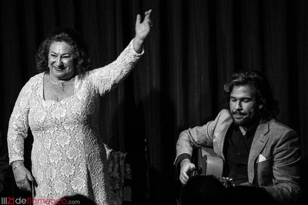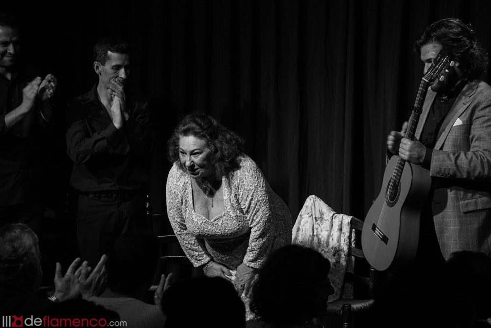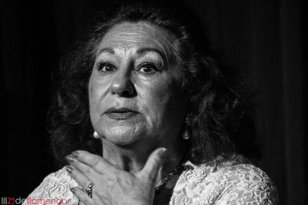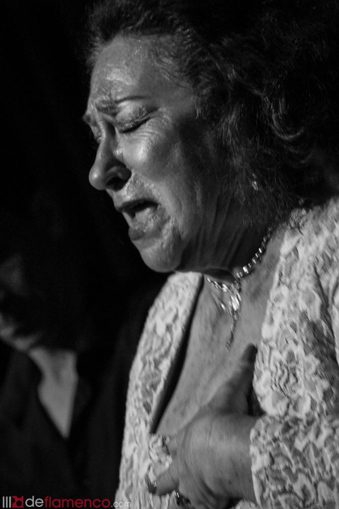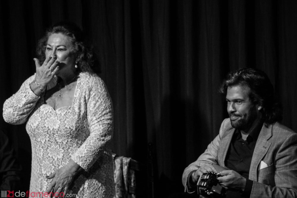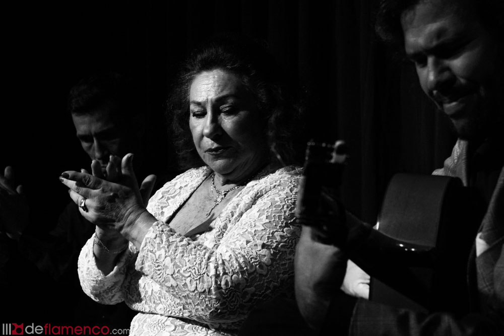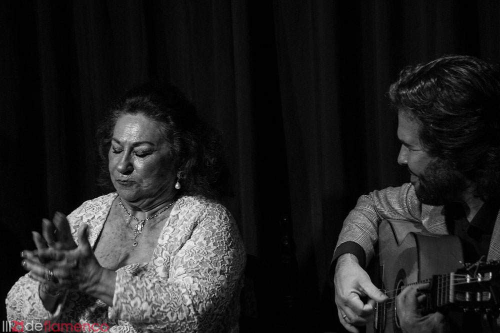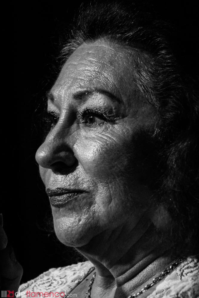 Vargas started out with alegrías, and the best thing was the verse that spoke of nostalgia for Camarón who for many of those of us in attendance, was the key that opened the flamenco treasure chest and also the windows to be able to  see new horizons.  It’s warm in the room and one lady in the audience offers the singer a fan, while another person requests mining songs of Levante.  María has her plan: “I’m going to sing tientos-tangos”, and that’s when what we came to hear starts happening.  She announces fandangos and then the intermission.