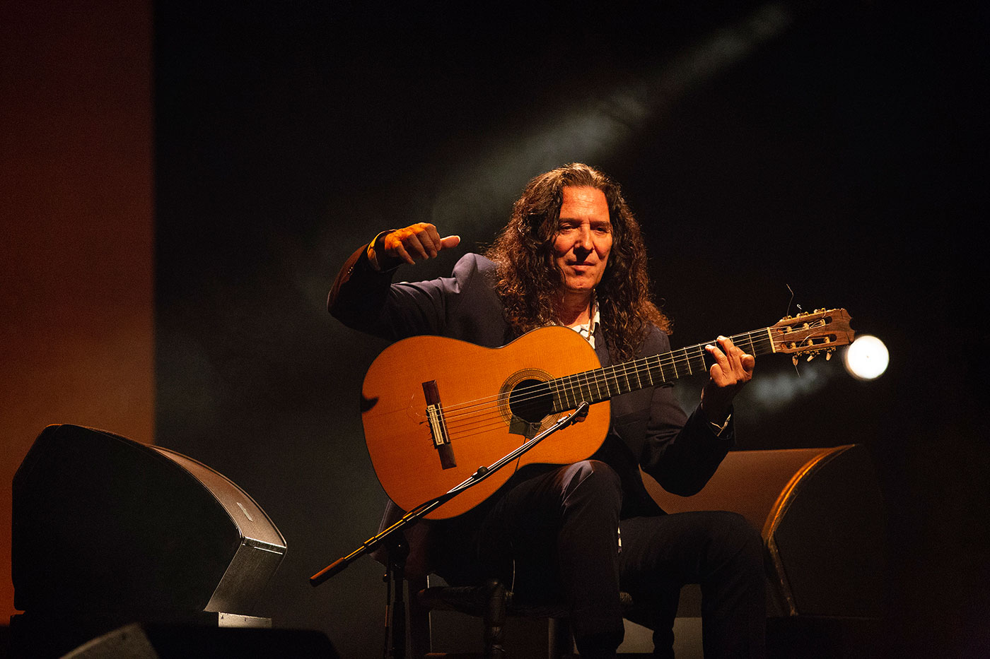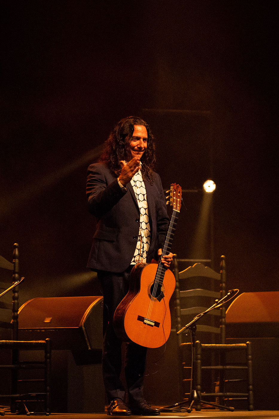 He dedicated a piece to Vicente Amigo whom he came to replace, and offered a popular repertoire: La Leyenda del Tiempo, the luminous alegrías of Sanlúcar, a piece recorded with Michel Camilo containing a thread of Entre dos Aguas…bulerías, tangos… A rich menu to please the most avid followers of this line that has dominated the last half-century of flamenco guitar.