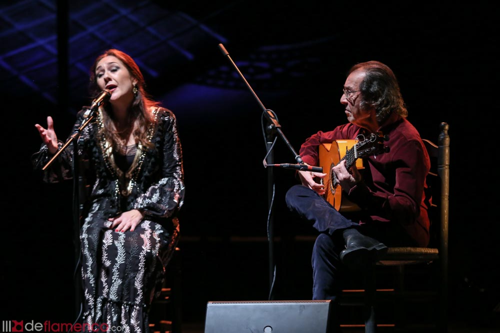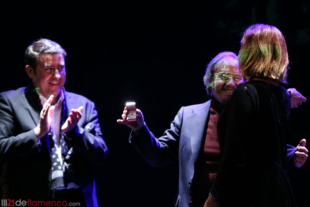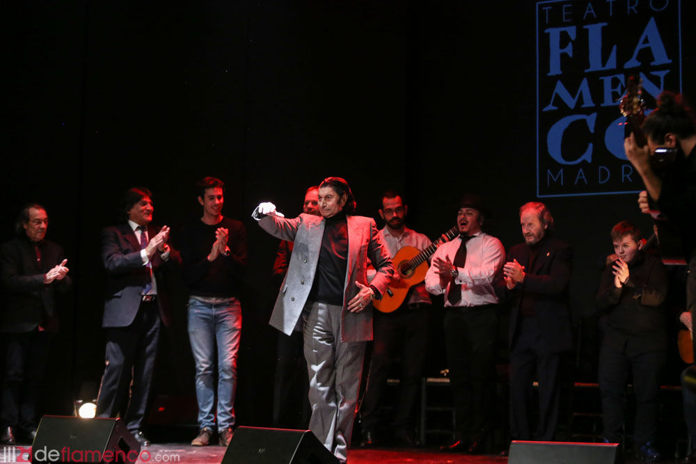 He was followed by Pepe Habichuela with his accustomed mastery, then joined by Rocío Diaz who sang some fandangos just finished that morning, and she sang to the Chamberi neighborhood where the maestro was born. Next, Rafael Riqueni appeared, and then we all felt something odd that would be a constant throughout the night, it was the feeling that all the guitarists had put aside their strengths to “become serranos and/or serranitos” and pay tribute to the influential master, the genius creator, the pioneer, the man who defended concert guitar when he was at Café de Chinitas in the sixties and who opened the way to form a triumvirate with Paco de Lucía and Manolo Sanlúcar that changed the course of the history of the flamenco guitar. José Manuel Gamboa served as emcee, don’t miss his biography “Víctor Monge Serranito, el guitarrista de guitarristas”.