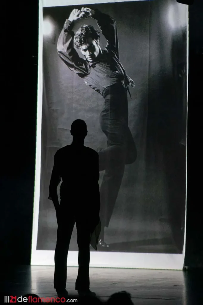 La voz de Robert -en francés, pausada, íntima- llega pronto. “La fotografía captura un instante que no volverá jamás”, dice. Y uno entiende que Álvarez quiere hacer lo mismo: retener instantes del baile antes de que se disuelvan, congelar líneas de brazos y manos como si fueran el negativo de un movimiento ya ido. Su baile, por ello, no tiene un amplio desarrollo; es un dibujo lento, limpio, con el acento en la colocación. Con los brazos traza figuras que evocan a los maestros -a Antonio Gades, a María Pagés, a Israel Galván, a Eva Yerbabuena, a Andrés Marín-, cuyas imágenes aparecen proyectadas al fondo. A veces acompaña sus poses. A veces se distancia y baila libre. Pero casi siempre parece estar dialogando con un álbum de recuerdos ajenos que intenta hacer propios.