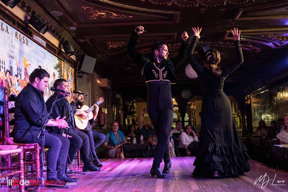 Los bailaores malagueños Adrián Santana & Agueda Saavedra en el tablao Villa Rosa de Madrid. Con Pino Losada a la guitarra, Juañarito & Manuel de la Niña al cante. 12 junio 2019.
