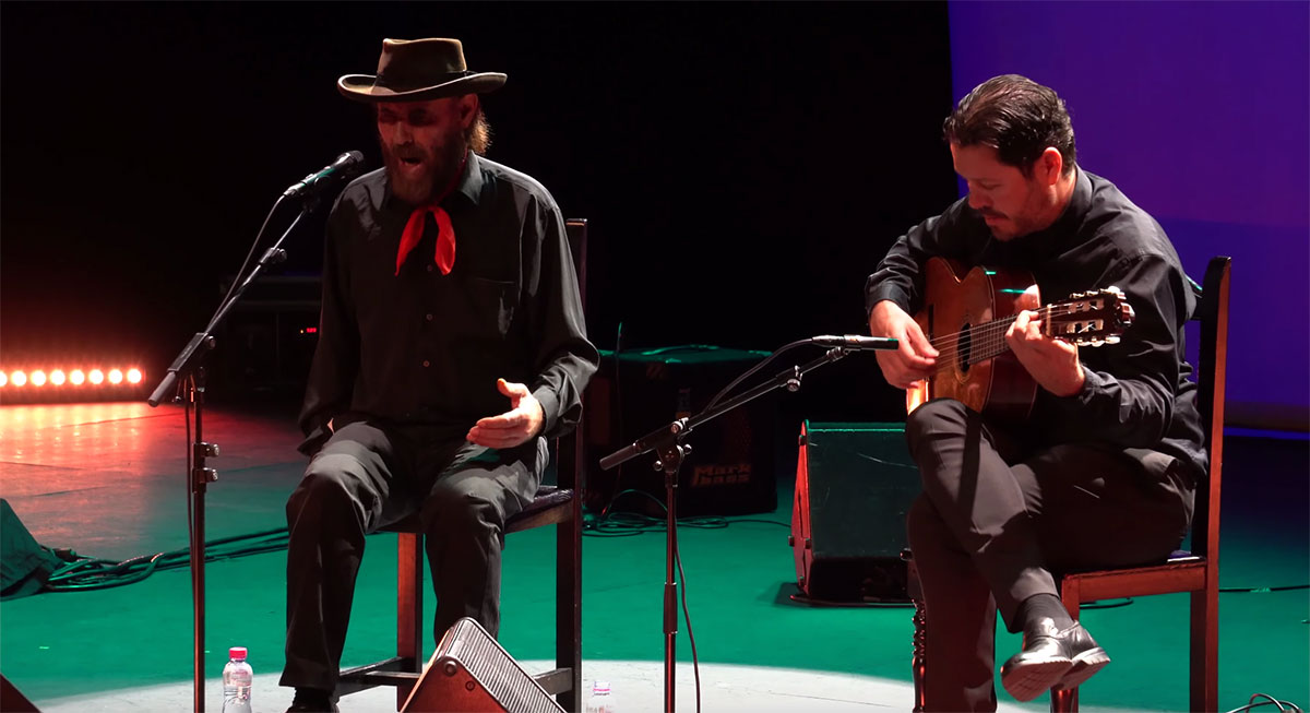 El Cabrero en el Festival Rivas Flamenca 2020, dentro de su gira de despedida, 10 de enero 2020. Auditorio Pilar Bardem. Rivas Vaciamadrid. Manuel Herrera a la guitarra.