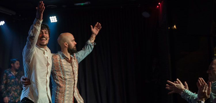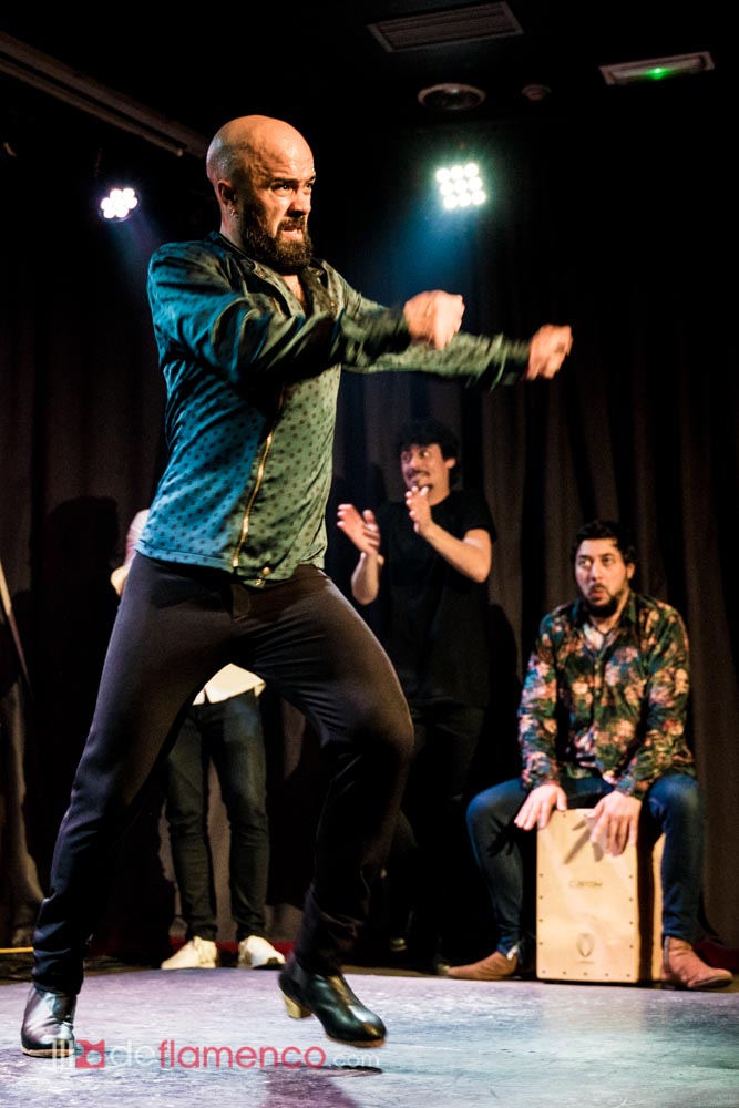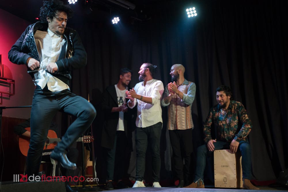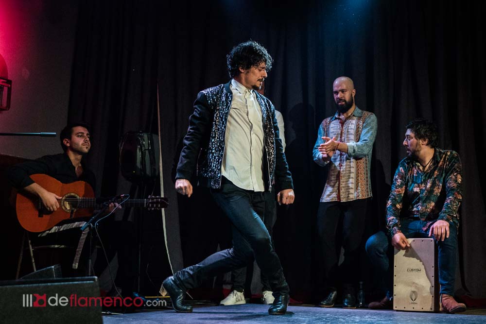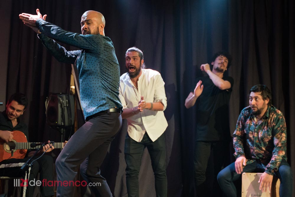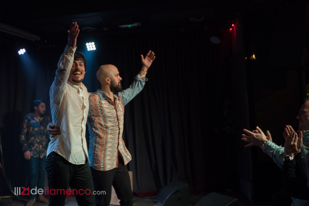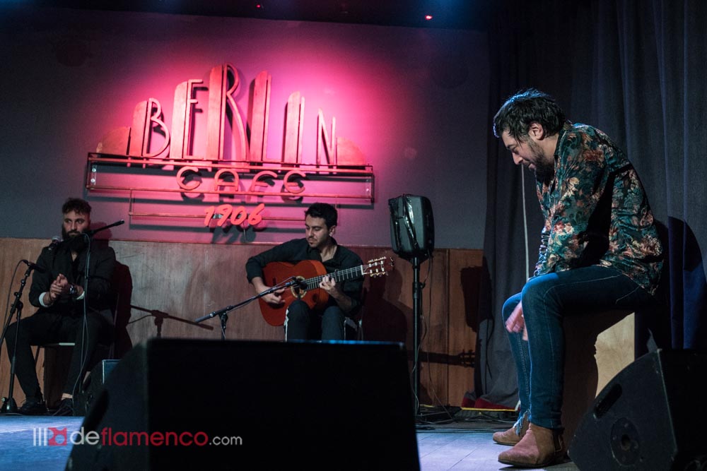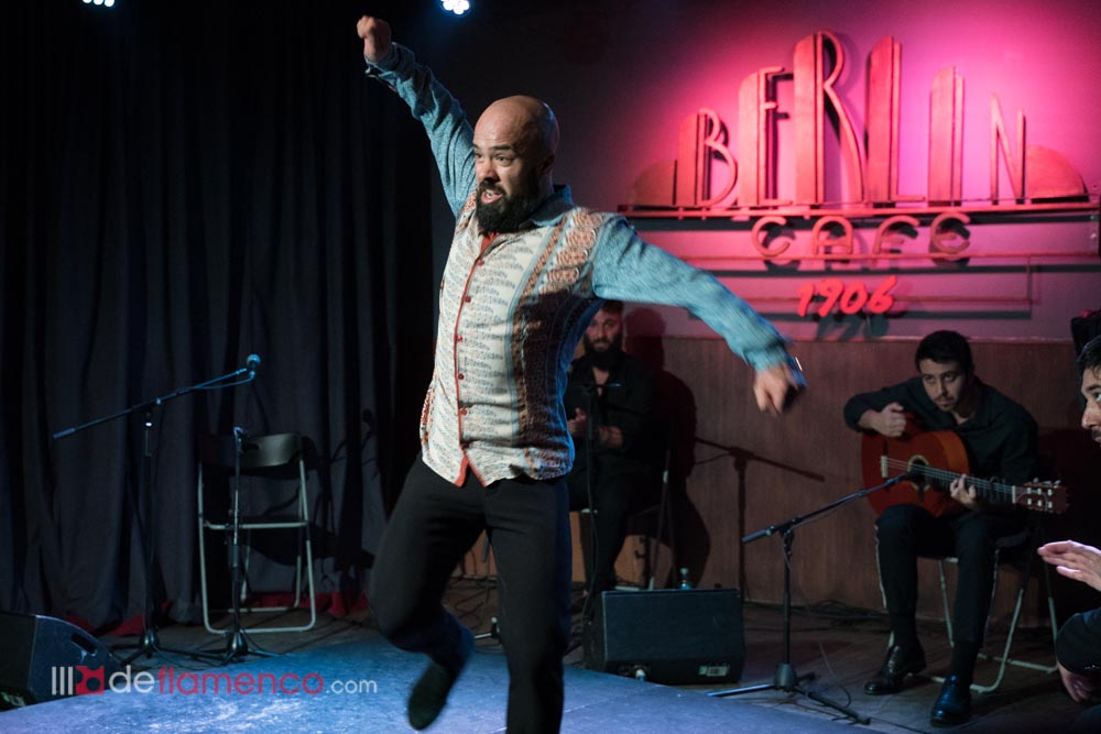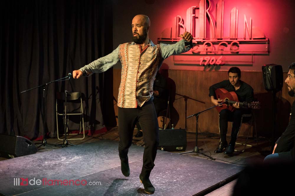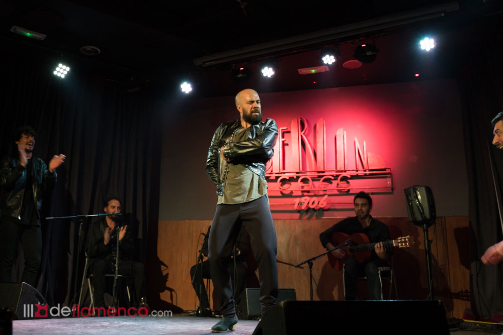Los bailaores Jesús Carmona & Nino de los Reyes, mano a mano en el Café Berlín de Madrid. Yerai Cortés en la guitarra, José del Calli & Juan José Amador «El Perre» en el cante y Bandolero a la percusión.