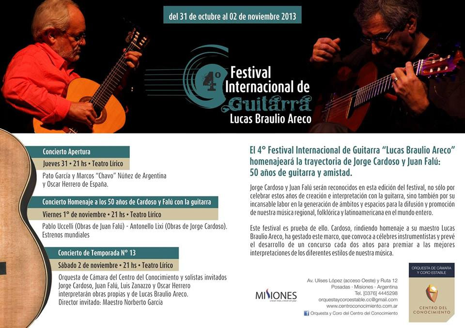 4º Festival Internacional de Guitarra. Lucas Braulio Areco. Pato García y Martos «Chavo» Núñez de Argentina y Oscar Herrero de España. Jorge Cardoso…
