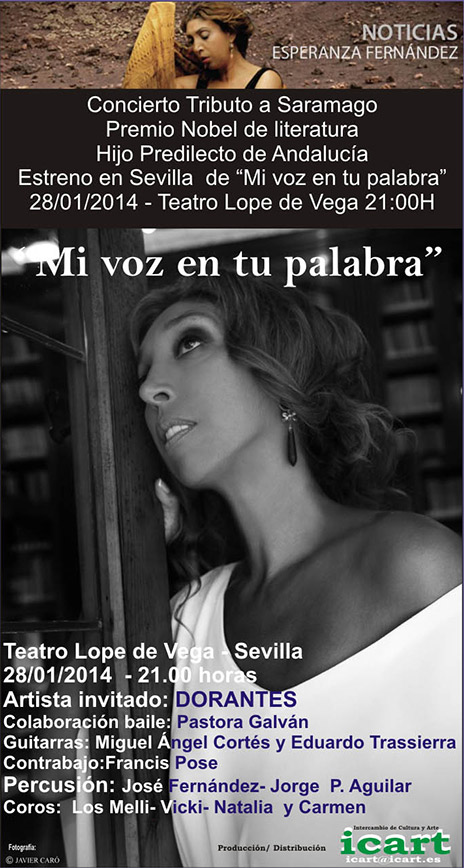 Esperanza Fernández canta a Saramago en la presentación de su disco «Mi voz en tu palabra».