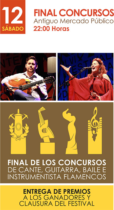 Sábado 12 FINAL de CONCURSOS DE CANTE, GUITARRA, BAILE E INSTRUMENTISTA FLAMENCOS & ENTREGA DE PREMIOS / 22:00 Horas / Antiguo Mercado Público