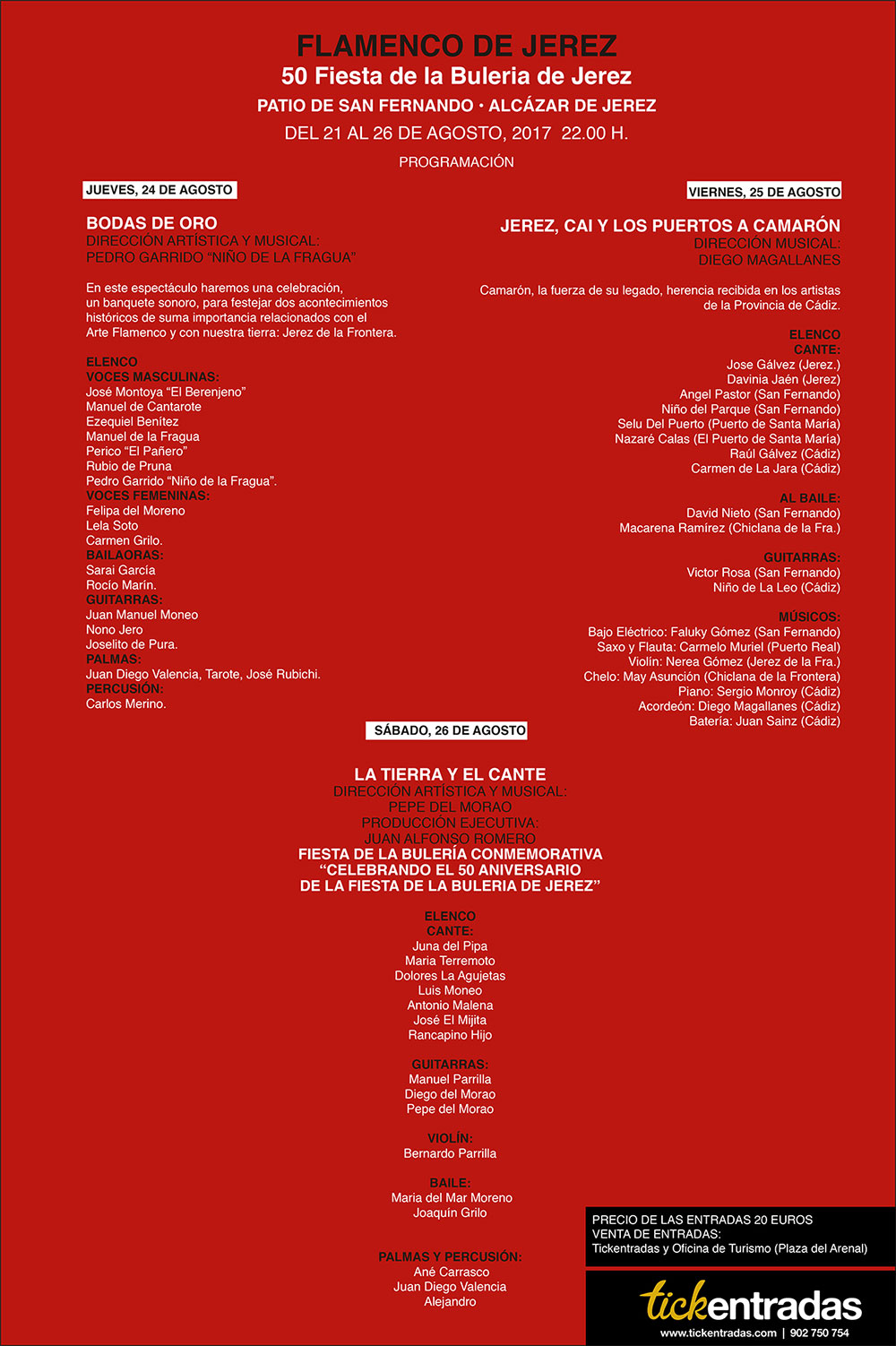 26 agosto: Fiesta de la Buleria de Jerez conmemorativa del 50 aniversario.