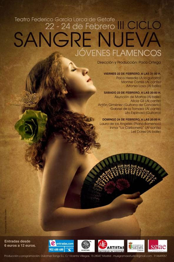 “Sangre Nueva” presenta las propuestas más jóvenes y novedosas que aparecen cada año en el flamenco. El proyecto nació con un disco “escaparate” producido por Paco Ortega para Universal Music. Un disco que tenía como misión mostrar a las más importantes figuras jóvenes que se incorporan con éxito al flamenco en alguna de sus tres vertientes: (Instrumento solista) Guitarra, Piano, etc., cante y baile. “Sangre Nueva Jóvenes Flamencos” se ha consolidado como Ciclo y ya forma parte del calendario cultural de Madrid.