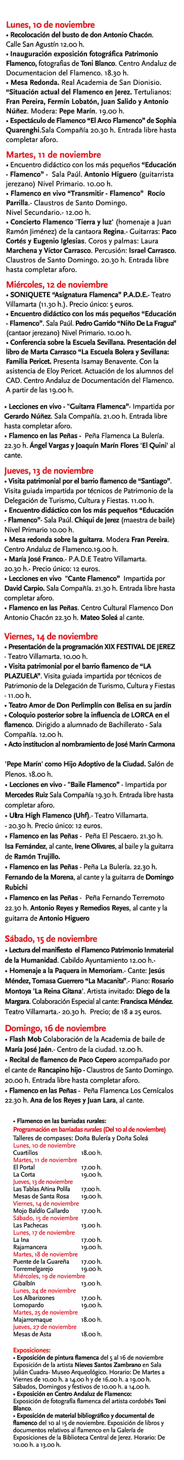 En commemoración del Día Internacional del Flamenco se celebra en Jerez una semana de flamenco con multitud de actividades en calles, plazas, salas, teatros .. de la ciudad
