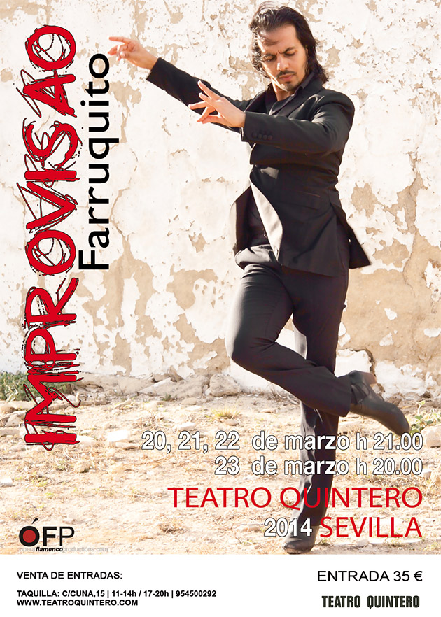 El bailaor Juan Manuel Fernández Montoya “Farruquito” regresa a nuevamente Sevilla con su Improvisao. Tras el éxito cosechado durante su estreno en noviembre, donde tuvo que ampliar una semana más su presentación, será el Teatro Quintero nuevamente el que acogerá el espectáculo los días 20, 21, 22 y 23 de Marzo como parte previa a la gira internacional que prepara el artista que comenzará en Inglaterra y que seguirá por el continente americano dentro del Flamenco Festival.
