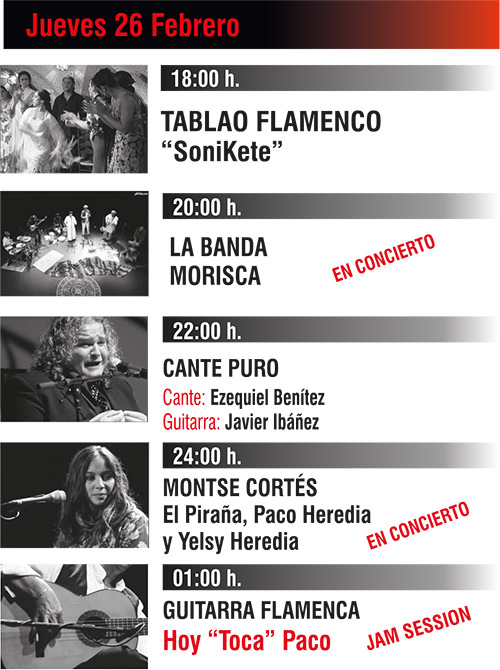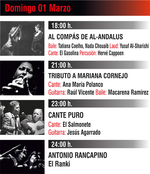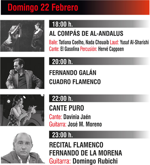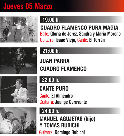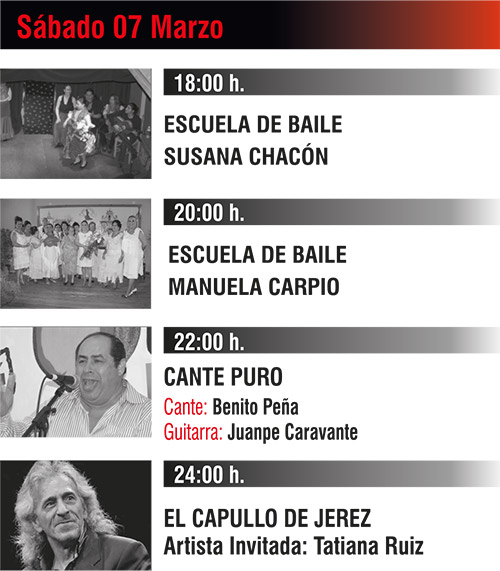 Programación complementaria al Festival de Jerez, con más de 4 actuaciones diarias, desde las 18.00h hasta la madrugada.