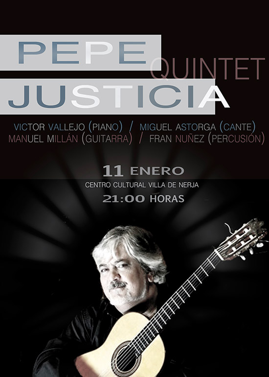 Pepe Justicia quintet en Nerja – Málaga. Victor Vallejo (piano) – Miguel Astorga (cante), Manuel Millán (guitarra), Fran Núñez (percusión)