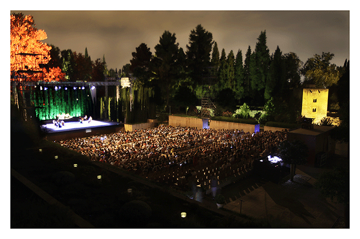Los recintos monumentales de la Alhambra y el Generalife, que han prestado sus históricos espacios para el desarrollo de las creaciones de Antonio Gades, Mario Maya, José Antonio, Pepa Gamboa, Blanca Li, Cristina Hoyos, José Carlos Plaza o Eva Yerbabuena han posibilitado al público de Lorca y Granada en los Jardines del Generalife convertirse en sujeto de una experiencia cultural y artística única.