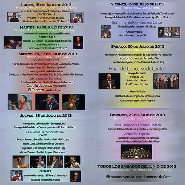 Concurso de Cante flamenco, actividades, actuaciones Capullo de Jerez, El Cabrero, Beátriz Romero, Miguel de Tena, Manuel Cuevas…