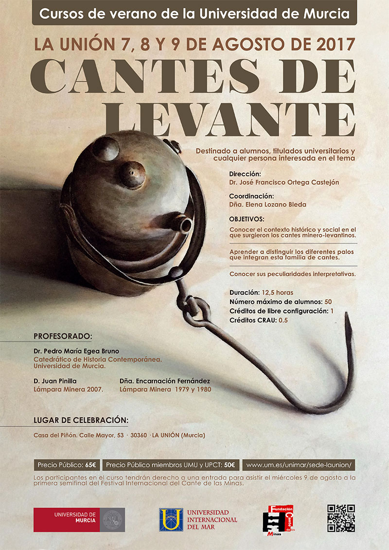 La Universidad de Murcia ha elegido como sede La Unión, para impartir uno de sus Cursos de Verano, en concreto el dedicado al “Cante de Levante”.