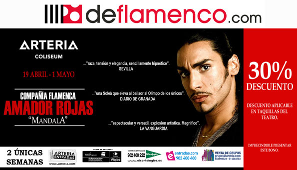 Imprime este cupón y presentalo en la taquilla del teatro al comprar tus entradas, así obtendrás un 30% de descuento, cortesía de DeFlamenco.com