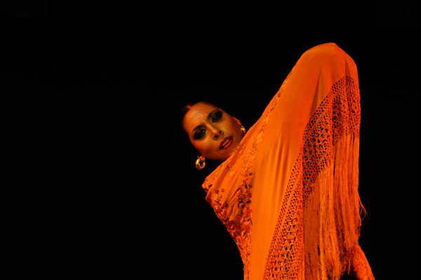 Cuando ya tenía la grabadora apagada, al final de la entrevista, Fuensanta La Moneta hizo que la encendiera para ampliar los comentarios que había vertido durante la misma. Tal es su pasión y sus ganas de trasmitir. Nacida en Granada, lleva una carrera ascendente y muy personal desde que en 2003 fue reconocida con el Desplante flamenco en el Concurso Internacional de las Minas de La Unión. Con su baile ha recorrido medio mundo y es admirada en todas las latitudes. Extremo Jondo es tu tercer montaje escénico, el cual, después de un año de rodaje, ha decidido pasarlo a DVD para su constancia. Nos interesamos por este trabajo y le preguntamos en qué se diferencia de sus anteriores espectáculos. Se diferencia sobre todo en que no es un espectáculo coreográfico en el que el baile es el protagonista y la música está a su servicio, sino que está basado en el cante y tanto el baile, como la guitarra y la percusión estamos al servicio de él. Mi expresión en el baile, por tal característica, llega a ser otra. Estoy totalmente relajada y libre en el baile. ¿Qué te llevó a trasladar Extremo Jondo a DVD? Teníamos gran interés de que de este trabajo quedara constancia para que el día de mañana fuera un referente para la posteridad. No es la primera vez que se hace una obra con los mínimos elementos, pero éste es un espectáculo donde destaca el esfuerzo, el trabajo en equipo, con una calidad musical contrastada y el planteamiento novedoso. De ahí mi interés de que quedara grabado y era una forma de darle salida a nuestro trabajo, que no se limitara simplemente a los escenarios. Lo estrenaste en el Festival de Música y Danza de Granada en 2010, en el teatro Isabel la Católica, y lo has grabado en agosto de 2011, en la clausura de Los Veranos del Corral, ¿ha cambiado mucho durante este año de rodaje? Sí, la obra ha sufrido algún cambio como todos los espectáculos. Cuando se estrena un trabajo y se va rodando, siempre se le hacen cambios que se crean convenientes. El más evidente es que Extremo Jondo se estrenó con Enrique el Extremeño y se ha grabado con Miguel Lavi. Se ha cambiado el cante, lo que permanece es el concepto y la comunión entre el cante, el baile y la guitarra. Me consta, por otra parte, que esta obra sigue cambiando, que está viva. ¿Cómo te planteas esa evolución? En realidad, la obra cambia cada vez que expone al público, porque hay una libertad de expresión… Incluso una misma se sorprende de cosas que salen de, de cosas que se crean en ese momento. Después, en otra función, serán otras cosas. Tenía muy claro que, al basar el espectáculo en el cante, el baile tenía otra responsabilidad. Al tenerlo tan claro, y el resto del equipo también, el proceso de montaje ha sido muy natural. Desde que se estrenó hasta hoy ha mejorado pero no es muy distinto de la primera vez. ¿Tiene mucho de improvisación, de espontaneidad cada vez que representas la función? Claro. Hay muchos momentos de espontaneidad. Tiene que ser así Dices que la responsabilidad es compartida, pero sólo abandonas el escenario, en una hora de duración, los minutos imprescindibles que dura un cante para cambiarte de vestido. ¿Ganas de bailar o presunción de energía? Que hay energía en este cuerpo es evidente. No tengo que demostrar nada en ese sentido, no tengo que hacer alardes de ningún tipo. Son ganas de bailar, ganas de mucho bailar y de bailarle al cante… Parece una paradoja, es un espectáculo de cante pero lo bailo todo, bailo los silencios, bailo las transiciones. Lo bailo todo. Y porque tengo que salir a cambiarme que si no… ¿Cómo eliges los cantes apropiados? Bueno, la elección de los cantes es compleja. En principio había muchos más cantes. Yo había elegido muchos palos que, por diferentes motivos, tenía ganas de bailar; unos porque no los había hecho todavía y otros porque necesitaba darles otra vuelta de tuerca. La elección de los cantes fue una cosa natural, fueron entrando por sí solos y acoplándose en las transiciones. ¿Los seleccionas tú misma? Los elijo yo misma, pero comparto esta decisión con el director musical [el guitarrista Miguel Iglesias] y con el cantaor. Es un trabajo muy a fondo y muy pensado. ¿Se te ha quedado algo en el tintero? Sí. Ya los tocaremos más adelante. Había más, pero había que descartarlos porque la obra no puede ser eterna. ¿Cuáles son tus referentes a la hora de crear? ¿De quién te acuerdas? En este espectáculo, como el trabajo no era tan coreográfico, mis referentes han sido todos de cante. En los espectáculos anteriores he mirado a los maestros que han influido directamente en mi carrera, con los que yo he trabajado. Maestros como Javier Latorre o Mario Maya. Y también otros maestros que, aunque no haya trabajado con ellos, he sido testigo de su trabajo. ¿Concedes mucho terreno a la vanguardia y a la contemporaneidad? Esa vena contemporánea me sale de vez en cuando porque soy joven, porque creo que estoy en la actualidad del flamenco y porque he crecido con otros artistas que ahora son coreógrafos y hacen hincapié en esas técnicas. ¿Por ejemplo tu contacto con Rafael Estévez? Efectivamente. He tenido la oportunidad de trabajar con él y empaparme de sus formas. ¿Tus músicos gozan también de ese margen de espontaneidad? Sí. Todos formamos parte del mismo equipo y todos tenemos que caminar en la misma onda. Si yo me siento libre y estoy cómoda también es gracias a ellos. Así ellos también se deben sentir libres dentro del escenario. Hay que darles esa oportunidad. Si no, no hay diálogo ni aparece ese duende que tiene que aparecer. Bueno, todos estamos en este mundo y todos nos conocemos. Hay veces que los buscas y veces que se coincide en el camino. Eso es lo que ha pasado. Este espectáculo nació de una experiencia en Japón donde estaban la mayoría de los que trabajan conmigo. Personas que artísticamente me marcaron y por eso quise hacer este espectáculo, contar es