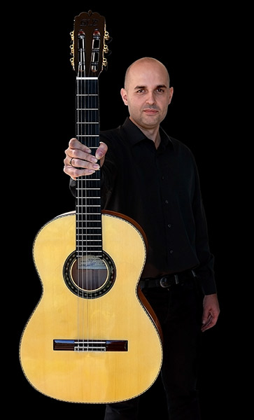 We've agreed to meet with David at the Liceu Conservatory, where it's a pleasure to speak of music, and not at all strange to be talking about flamenco, thanks to the work of teachers such as Manuel Granados whom Leiva considers the person who taught him the most. «This is where I did my studies of flamenco, musical pedagogy and classical guitar» he explains. And here he has also been giving classes of cante accompaniment and other material for eleven years. David has 60 books published, he tunes and signs the instruments made by guitar-maker Juan Montes with whom he plans to produce a collection of concert guitars at affordable prices just in time for Christmas. «Many students comment that they can't buy a good guitar, and it occurred to us to make a series at a good price and with quality» he explains to Deflamenco.