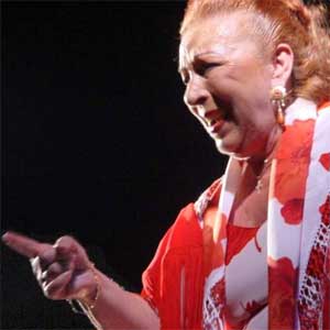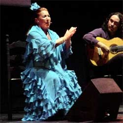 With a professional history that spans decades it’s nearly impossible to name any major flamenco artist with whom she hasn’t shared a stage. Cañeta worked her way through the heyday of tablaos, from beginning to end, taking advantage of the experience to invent a unique and unmistakable artistic persona, far removed from the gentle sweetness we associate with Málaga flamenco, neither is it Jerez or Sevilla style, but pure “Cañeta”, a savory mix of voice and dance all passed through the filter of her own personal vision in each performance, spiced with colorful dresses, flowers, ruffles and polkadots, the very antithesis of the currect glacial aesthetic of black upon black. Exhibiting boundless energy on stage, the years appear to slough away as communication is established with her audience.