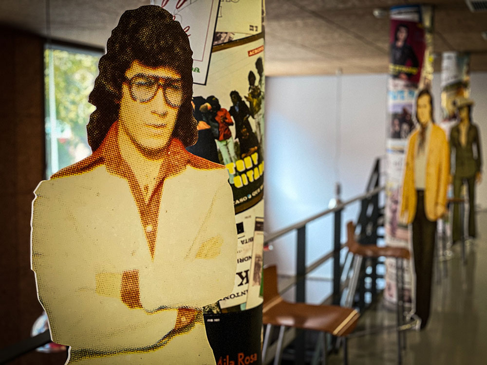 Pasas por el umbral del centro y ¡zasca! Te encuentras con el careto de Tony el Gitano a tamaño grande con el corte de pelo a navaja (una técnica de peluquería de los años setenta, nada que ver con los indios navajos). Podría ser el antecedente de un parque temático sobre la rumba. Pongan un equipo de sonido cutre, una pista de coches de choque, una noria, el tren de la bruja y el puesto de algodón dulce y manzanas caramelizadas y tendrán asegurado la mitad de un viaje imaginario. Si quieren completar se pueden calzar unos pantalones campana (los del traje blanco de Elvis también valen).