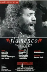 Ustedes/vosotros os preguntaréis qué tiene que ver todo esto con el flamenco. Vale, les contaré mi punto de vista: Aquí es donde arranca el jazz flamenco donde músicos como José Antonio Galicia, Jorge Pardo, Rubém Dantas comienzan a trabajar con Paco de Lucía y Camarón. Este es el ambiente donde eso no parece raro, el ambiente que propicia “La leyenda del tiempo”, el ambiente que hace que Mario Pacheco abandone las oficinas de Edigsa en Barcelona para fundar Nuevos Medios. Alejandro llena el palacio de los deportes de Goya con BB King en el primer día y Oscar Peterson en el último y coloca a un grupo español para arrancar la velada. Apuesta por las leyendas del jazz de todos los tiempos Phil Woods, Sonny Rollins y… Jorge Pardo. A eso se le llama política cultural. Doce mil personas acuden a ver al grupo de baterías M´Boom con Max Roach y a los Art Ensamble de Chicago, el grupo que abre esa noche es Orgón que cuenta con un invitado especial: PEPE EL JAZZMAN…free jazz para el niño y la niña ¡oiga! Y, al año siguiente, repite Pepe el jazzman con José Antonio Galicia que está con Pelayo Fernández Arrizabalaga y Gerardo Núñez.