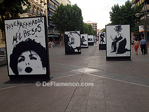 En la Plaza de las Tendillas, el flamenco indica que estamos en un punto flamenco, las fotografías de Toni Blanco y Pepe Díaz forman parte de la Noche Blanca. |