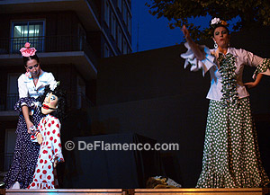 Al margen de las 'Grandes Producciones', otro de los acontecimientos de la Noche Blanca fué el desfile de Moda Flamenca de la diseñadora «Juana Martín» en los Jardines Colón de la ciudad. |