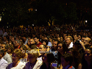 | En la Plaza de la Corredera, el cantaor jerezano junto a Moraíto Chico, protagonizarón el concierto flamenco más multitudinario de toda la noche. Todos los artistas participantes en la Noche Blanca del Flamenco también eran conscientes de la singularidad del evento. |