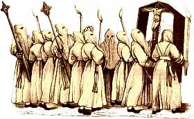 Cultos religiosos o cofradías han existido en Sevilla desde los albores de la cristiandad. No obstante, sólo es a partir del siglo XVI que algunas de estas asociaciones comenzaron a interesarse por estimular el renacimiento de la fe de la población en general, y este movimiento dio lugar a las primeras procesiones. Al principio fueron acontecimientos sobrios y espartanos. A la cabeza de la procesión iba un abanderado con el estandarte de la cofradía. Después los cofrades y demás personas quienes por motivos personales deseaban tomar parte en la devoción. A la cola un sacerdote o noble rodeado de los «hermanos de luz» (cofrades que portaban velas), y los «hermanos de sangre» (aquellos que portaban imágenes) llevaba un crucifijo. Este formato básico y austero ha ido desarrollándose progresivamente para alcanzar el ostentoso esplendor de las procesiones actuales, las cuales justifican la fama universal de la Semana Santa andaluza. Los cofrades todavía visten túnicas de tejido basto atadas a la cintura con una soga. Alrededor del cuello llevan los escudos de sus correspondientes cofradías. Muchos caminan descalzos, sus rostros escondidos detrás de la característica toca cónica. Al paso que la procesión hace su ruta por las calles estrechas, una banda militar toca una marcha lenta y solemne. En determinados puntos el desfile se detiene delante de un balcón o plataforma donde espera un cantaor o cantaora para ofrecer su saeta, un cante lleno de misticismo andaluz, cantado a palo seco y que personifica el espíritu de la Semana Santa.