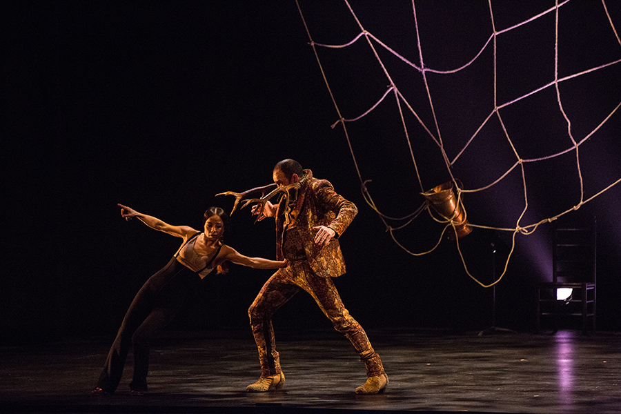Olga Pericet dances the garrotín with a horned creature in “Pisadas” (Photo: Alejandro Mallado)