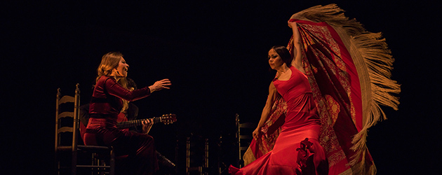 Rocío Márquez is the voice that connects all the elements in the Gala Flamenca, seen here with Olga Pericet. (Photo Carole Edrich).