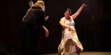 Así, el primer estreno absoluto de la XXX edición del certamen jerezano llega al Teatro Villamarta como el baile de su urdidora: ingobernable. Primero con los tiempos: empezó pasadas las 20:30 y a las 22:30 aún abría el fin de fiesta. Y después con una estructura que, a ratos inconexa y con transiciones sin pulir y tiempos muertos, florecía cada vez de un ramillete distinto, nuevo, alargándose. Eso sí, a golpe de momentitos de gloria.